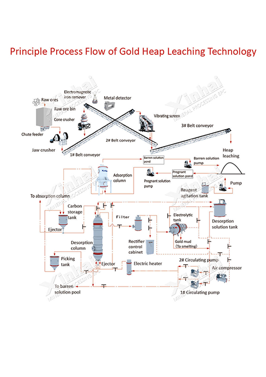 Quá trình lọc đống vàng có nghĩa là chuyển quặng thô đến bãi đã chuẩn bị sẵn, hoặc đổ trực tiếp lên đá thải hoặc quặng cấp thấp, sau đó sử dụng hóa chất xyanua hoặc hóa chất tách vàng thân thiện với môi trường như Vichemgold để phun hoặc thấm, và quặng phản ứng với chất lỏng lọc xyanua. Sau vài lần tái chế chất lỏng lọc và phun lặp lại, chất lỏng lọc có thể được thu thập. Sau đó xử lý chất lỏng rửa trôi bằng phương pháp than hoạt tính hoặc kẽm kim loại và dung dịch cằn cỗi quay trở lại hoạt động lọc đống để tái sử dụng.