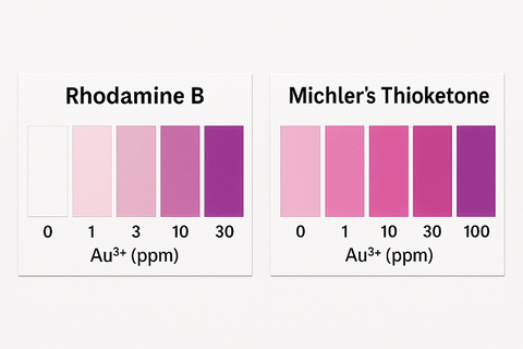 So sánh Thuốc thử hữu cơ chỉ thị màu ( RhodaminB và Michler's Thioketone) chuyên dùng để phát hiện ion Au³⁺ một cách chọn lọc tại hiện trường, đơn giản và dễ làm.